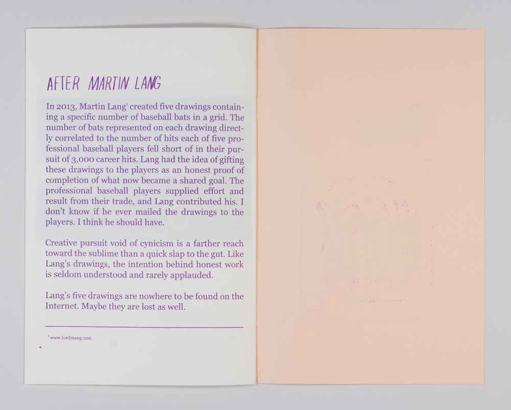 This book contains possible/probable designs for 11 works on Ed Ruscha’s professional website listed as “missing works.” Each design is based on the relative style of the artist around the same time.