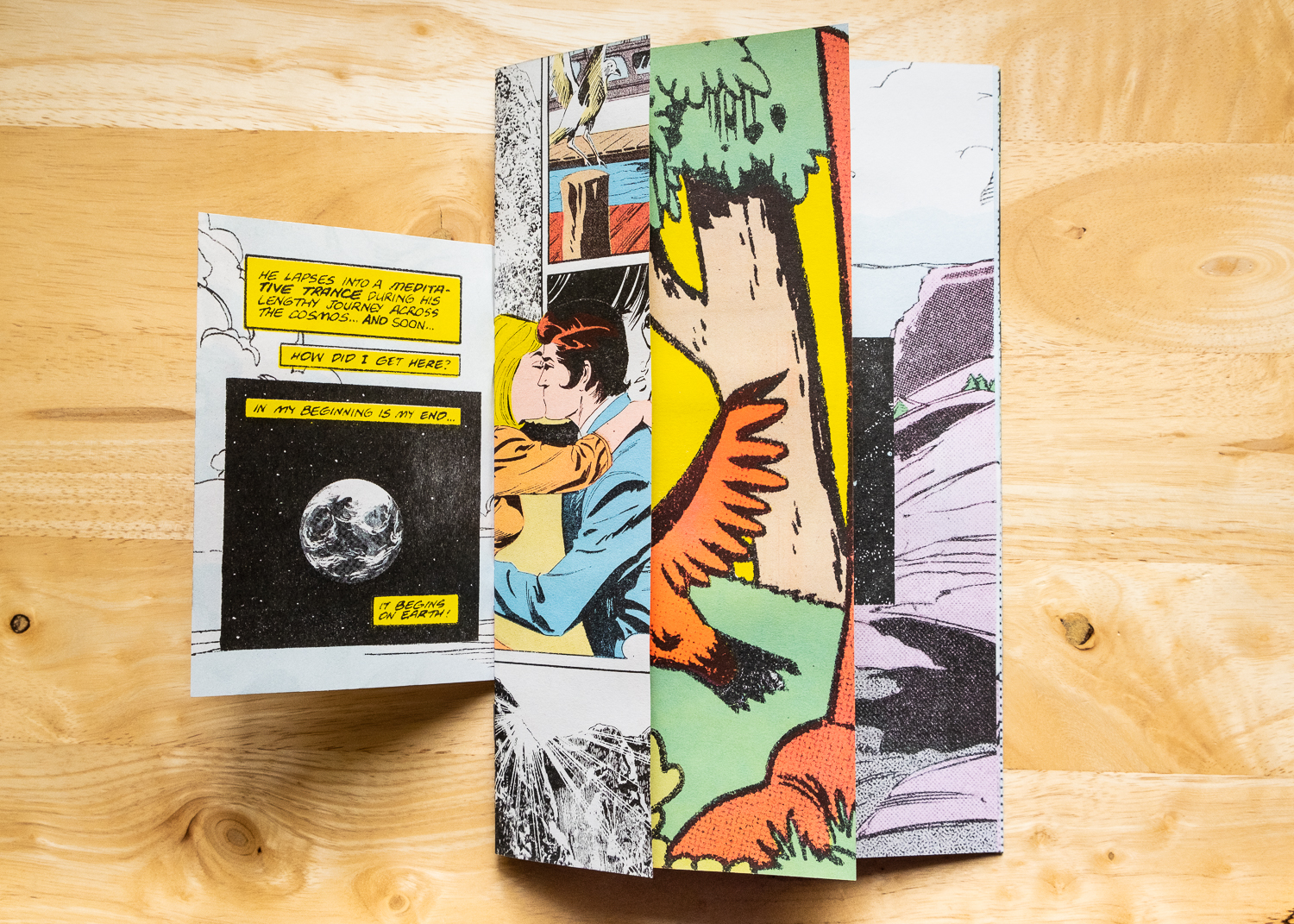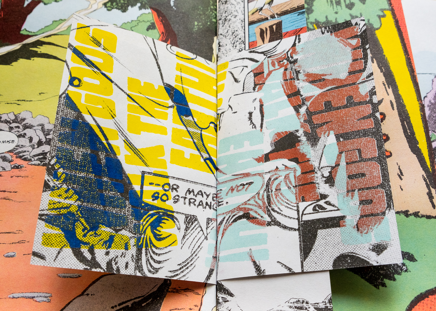 When Gods Walk the Earth is the second in a four book series by Will Arnold. The series is structured around T.S. Eliot's Four Quartets. Though the books are semi-narrative, they each stand alone as individual poetic chapters. Each book is made of collages (analog and digital) of the source poems' text intermixed with text and images from a variety of comic book sources.