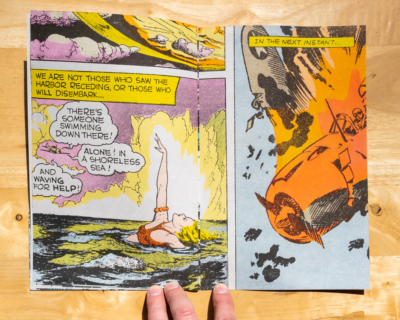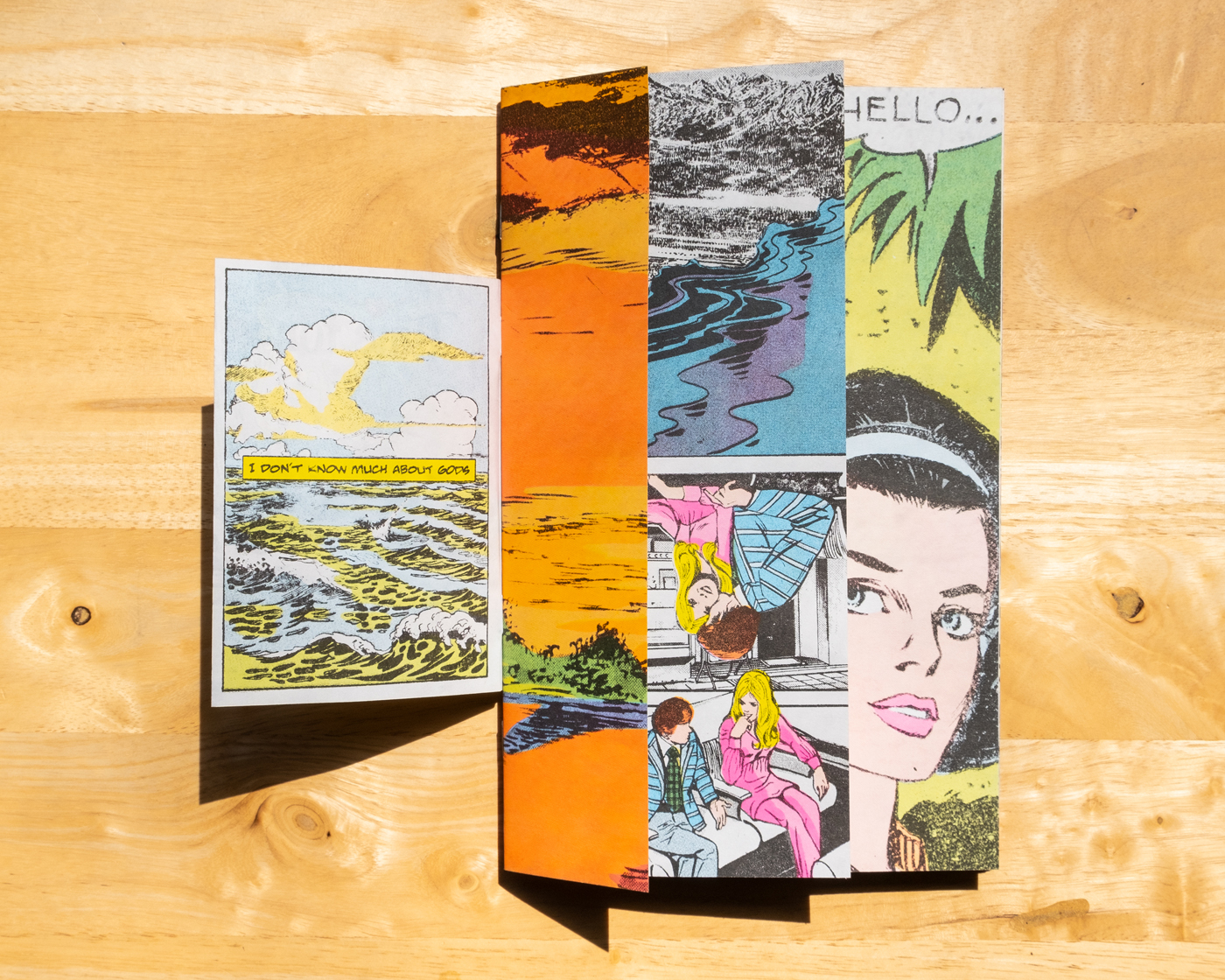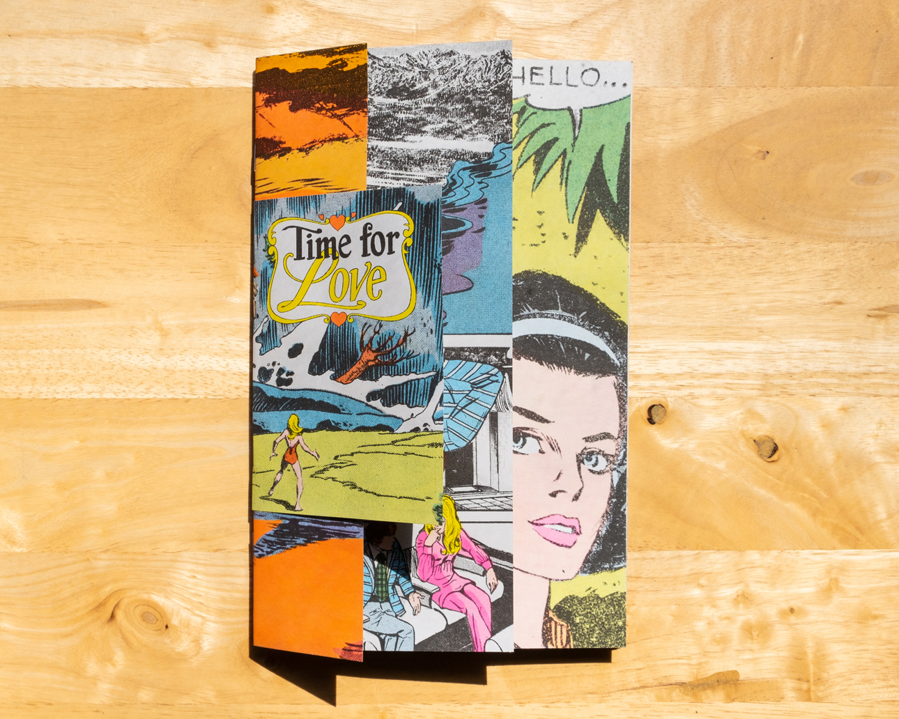 Time For Love is the third in a four book series by Will Arnold. The series is structured around T.S. Eliot's Four Quartets. Though the books are semi-narrative, they each stand alone as individual poetic chapters. Each book is made of collages (analog and digital) of the source poems' text intermixed with text and images from a variety of comic book sources.